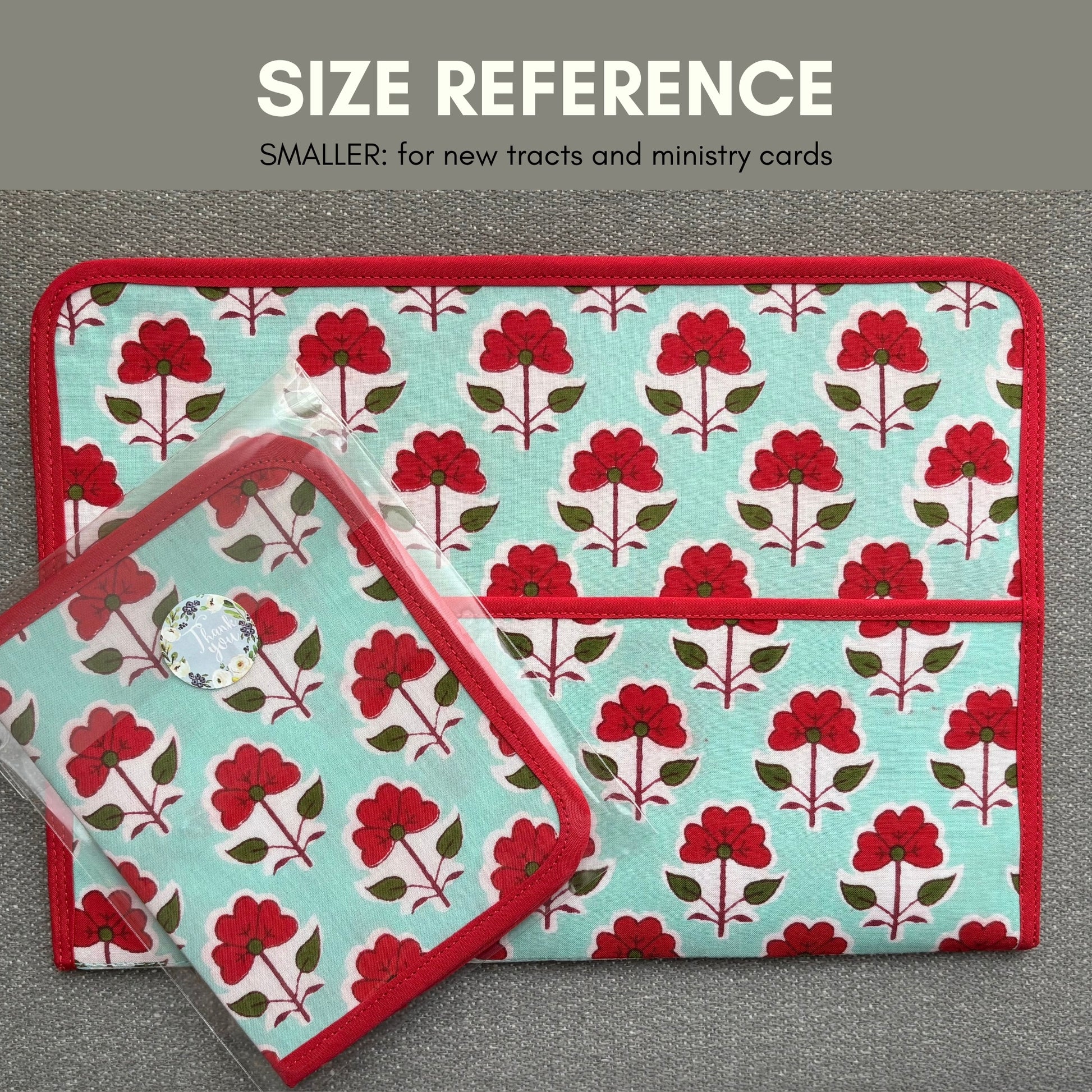 Red and Mint Floral Ministry Magazine Sleeve – Indian Block Print Floral Field Service Organizer (7.5” x 10.5”)