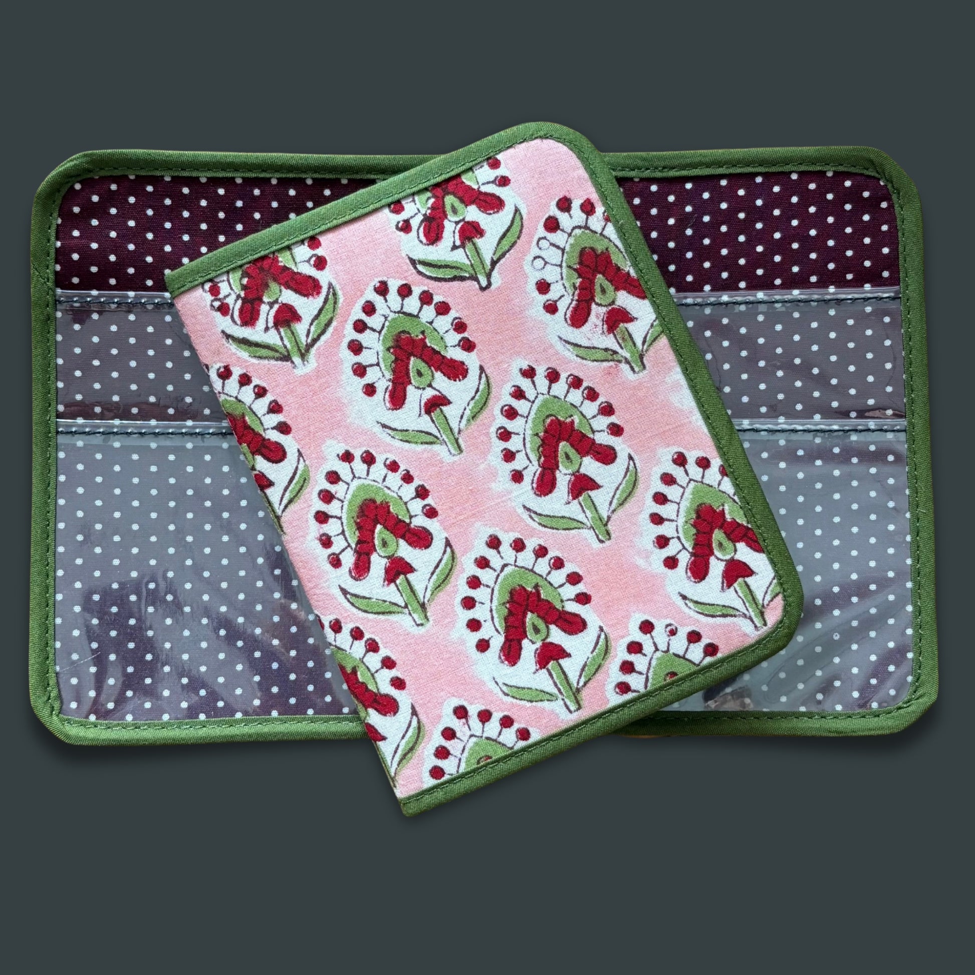 Green and Pink Indian Block Print Mini Ministry Organizer – Tract and Invitation Holder (4.4” x 5.8”)
