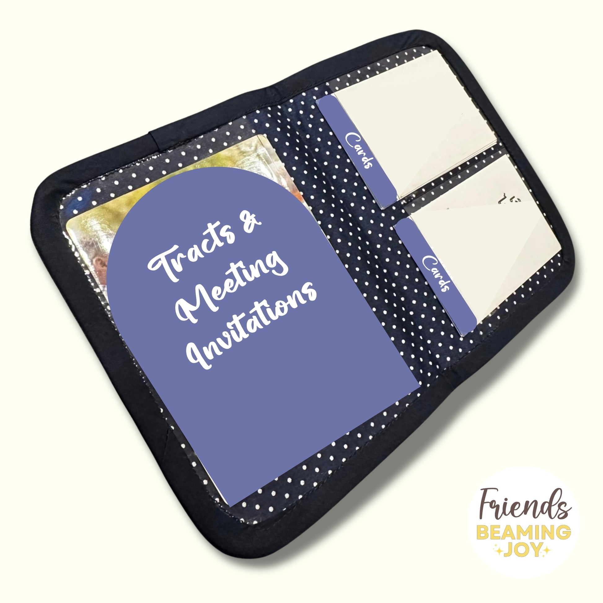 - Inside: Clear pockets for JW cards, meeting invitations and new pocket size tracts